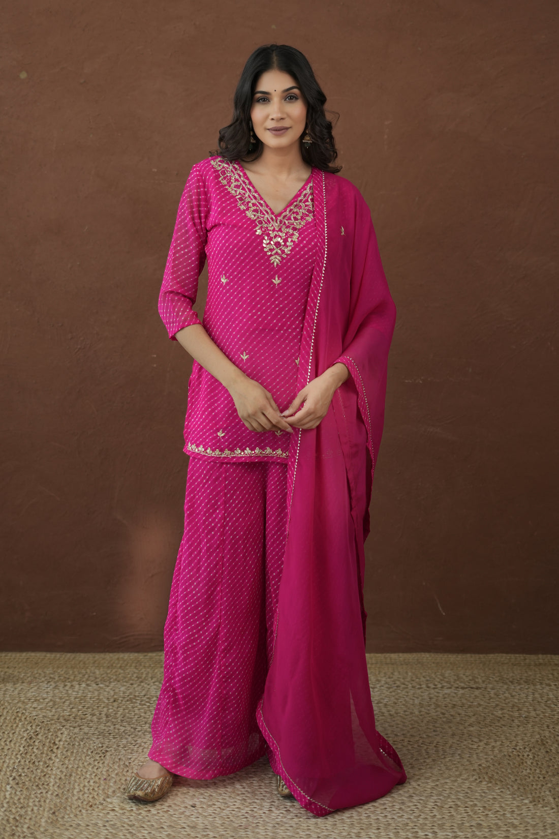 Pink Laheriya Royale Hand-Dyed Kurti and Pant Suit Set