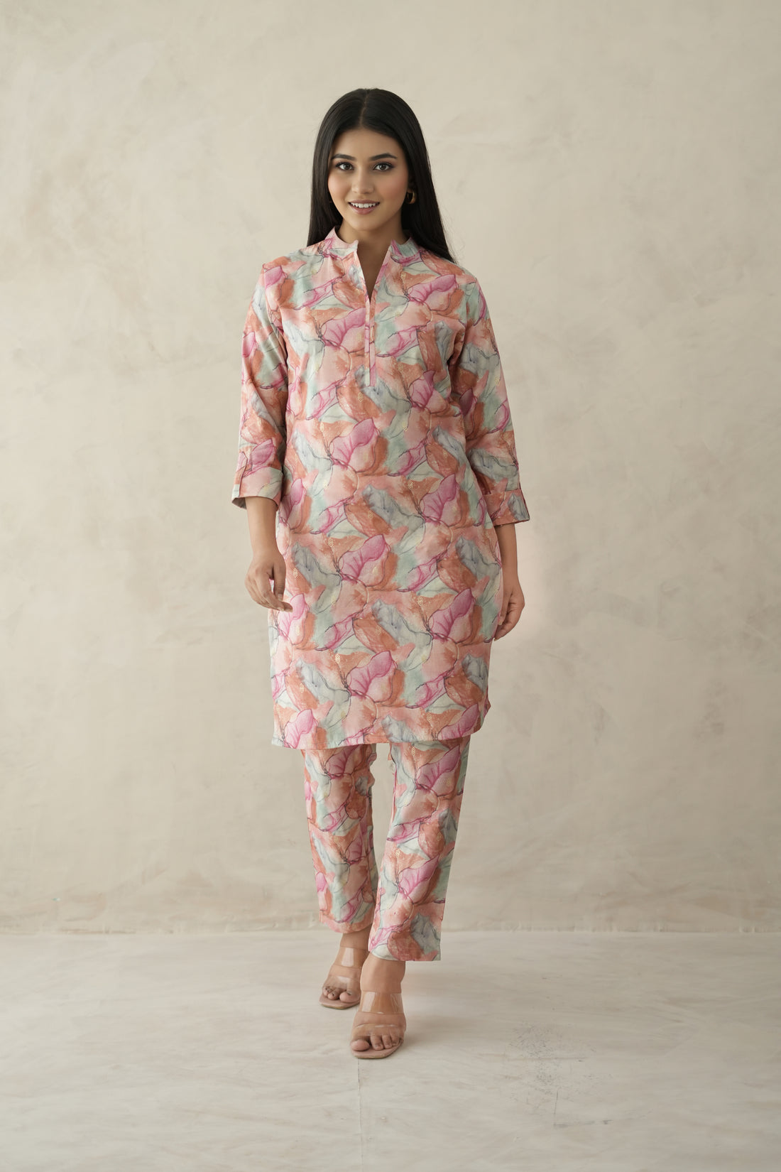 Pink Brush Paint Artisan Brushstroke Silk Coord Set