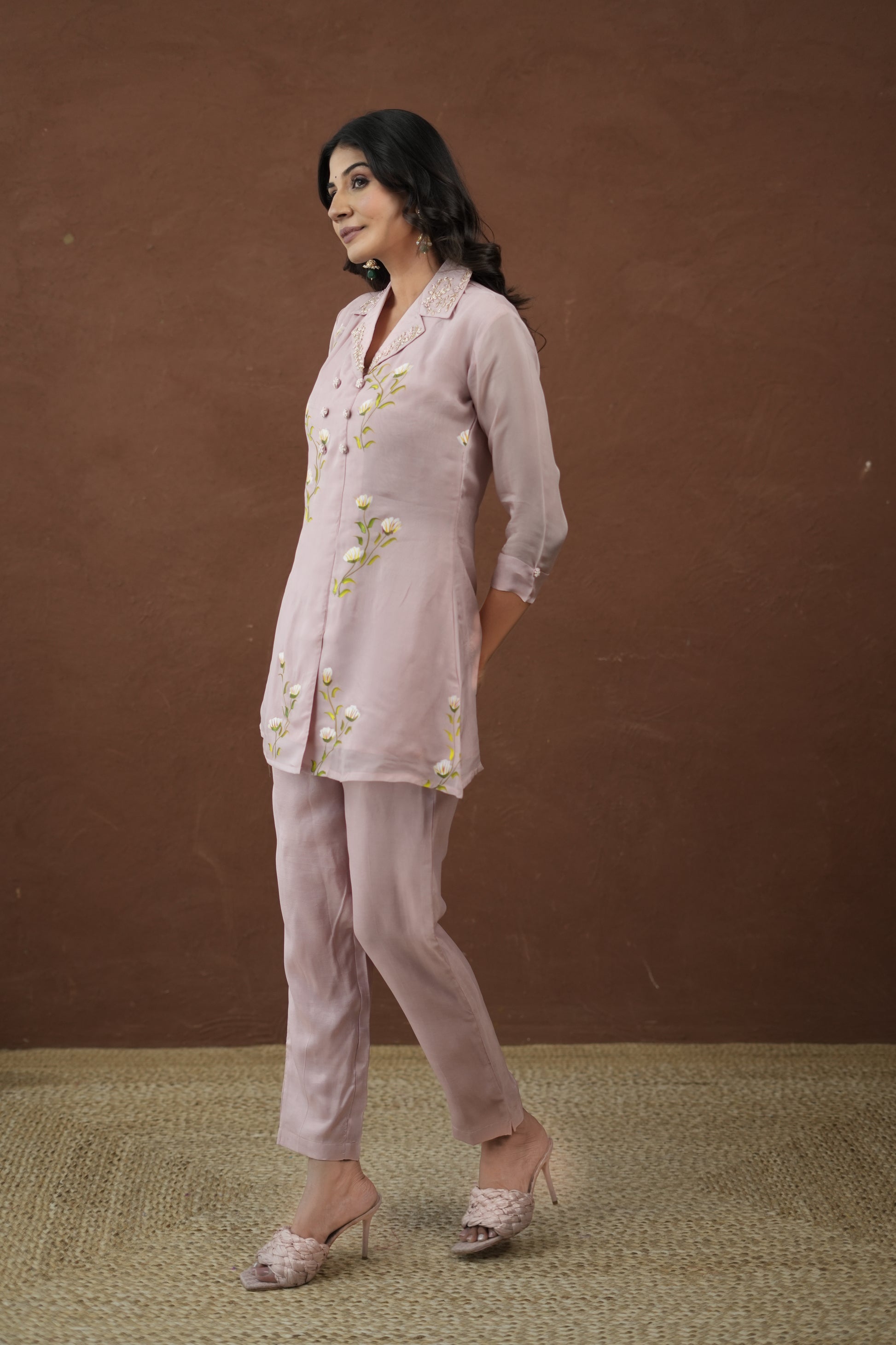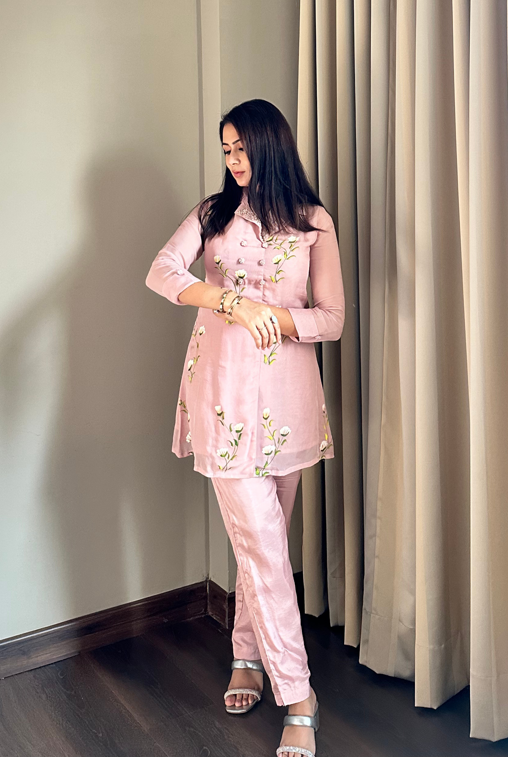 Pink Brush Paint Artisan Brushstroke Silk Coord Set