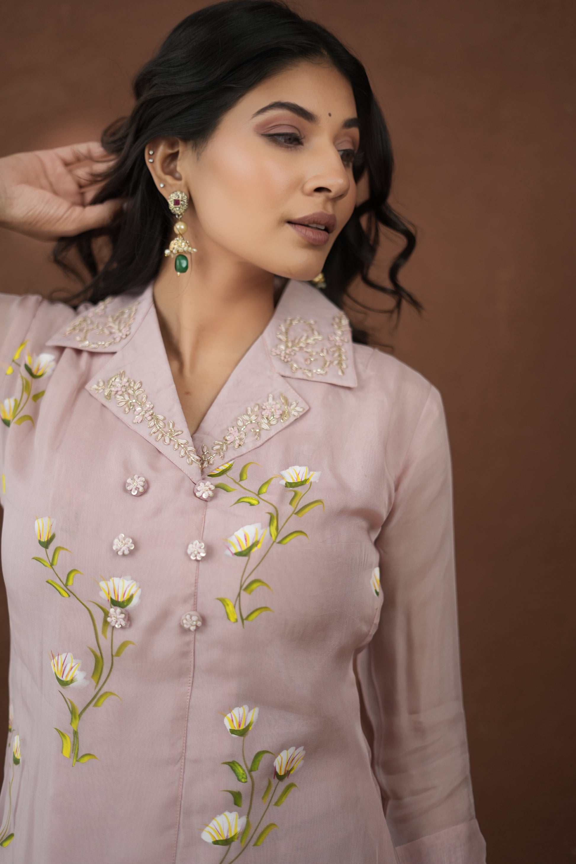 Unveil your artistic side with the Artisan Brushstroke Silk Set, featuring a stunning top crafted from luxurious Viscose Orzana Silk adorned with delicate hand brush paint detailing—each piece uniquely expressive and elegant. Paired with a smooth, flowing Viscose Upada Silk bottom, this ensemble offers effortless grace and comfort.