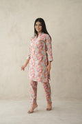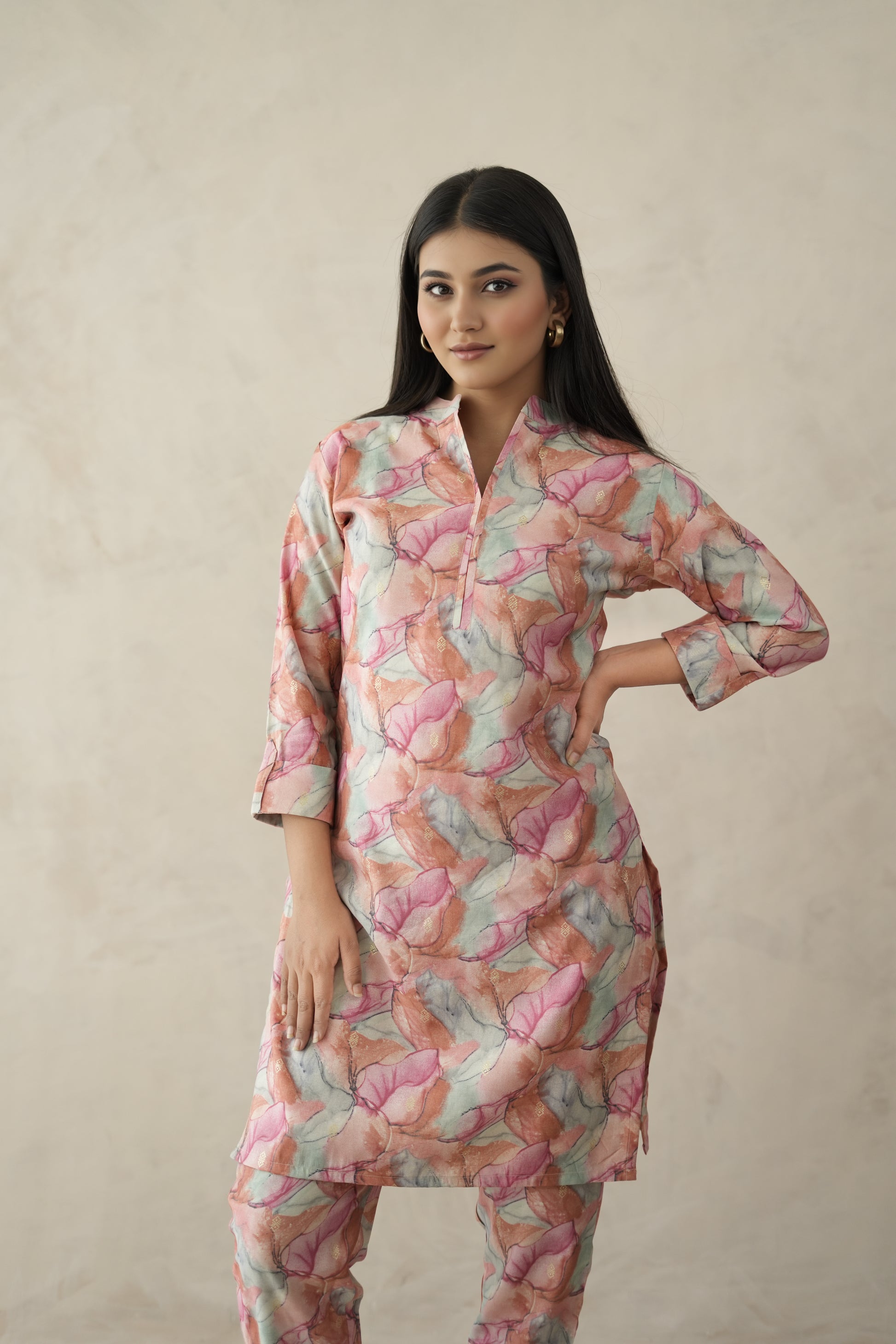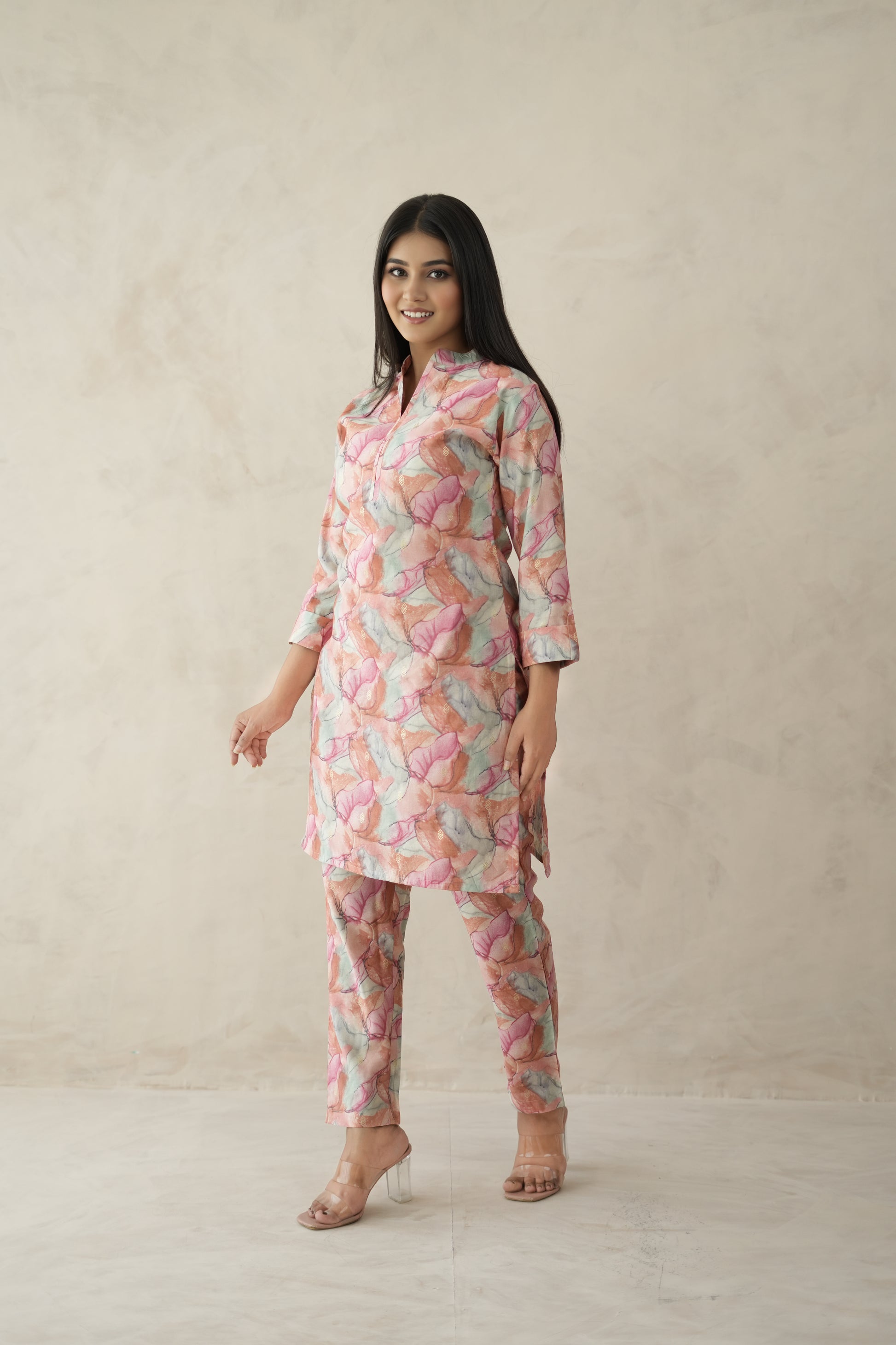 Light Pink Digital Bloom Habotai Silk Coord Set