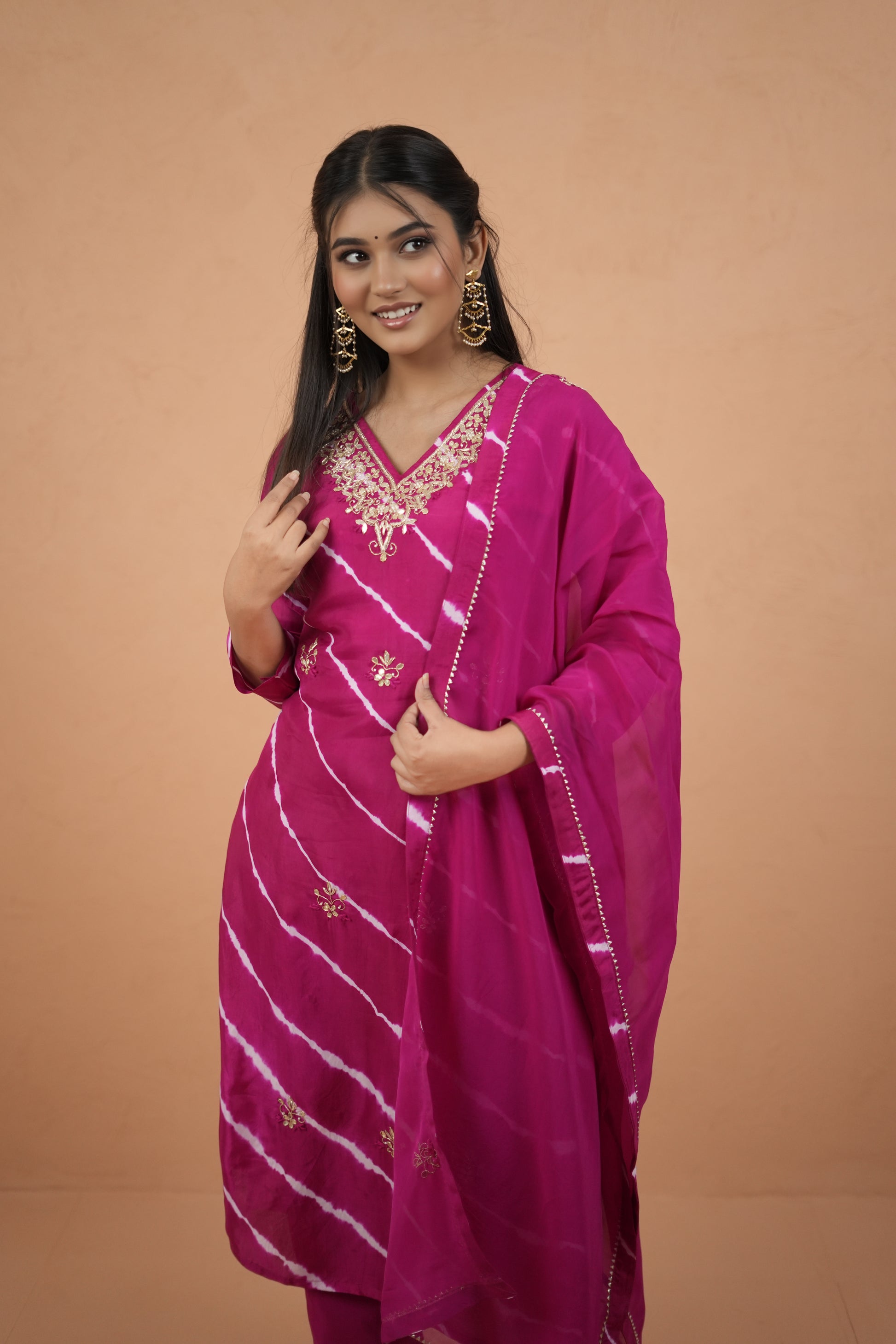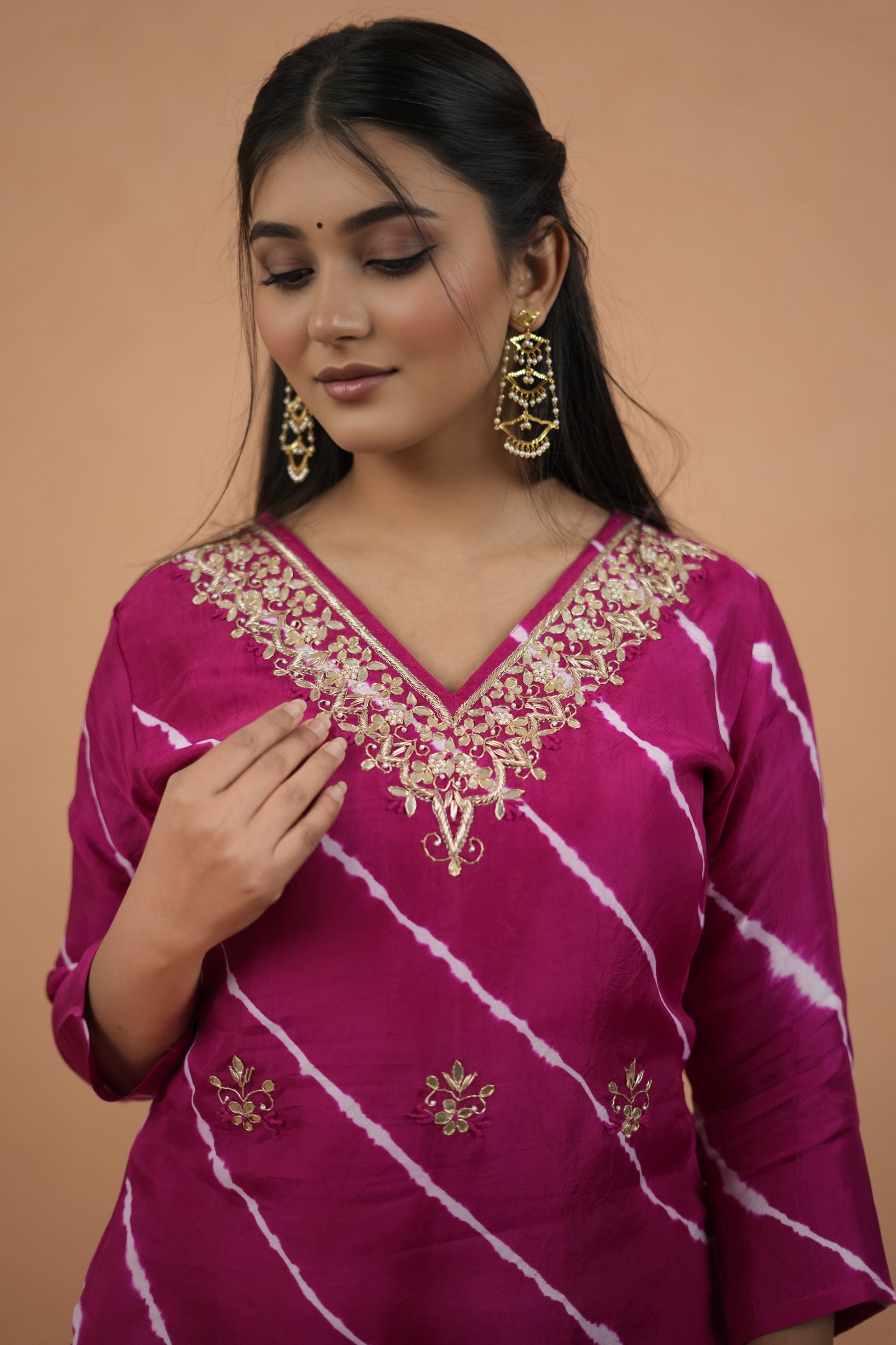Pink Laheriya Royale Hand-Dyed Kurti and Pant Suit Set