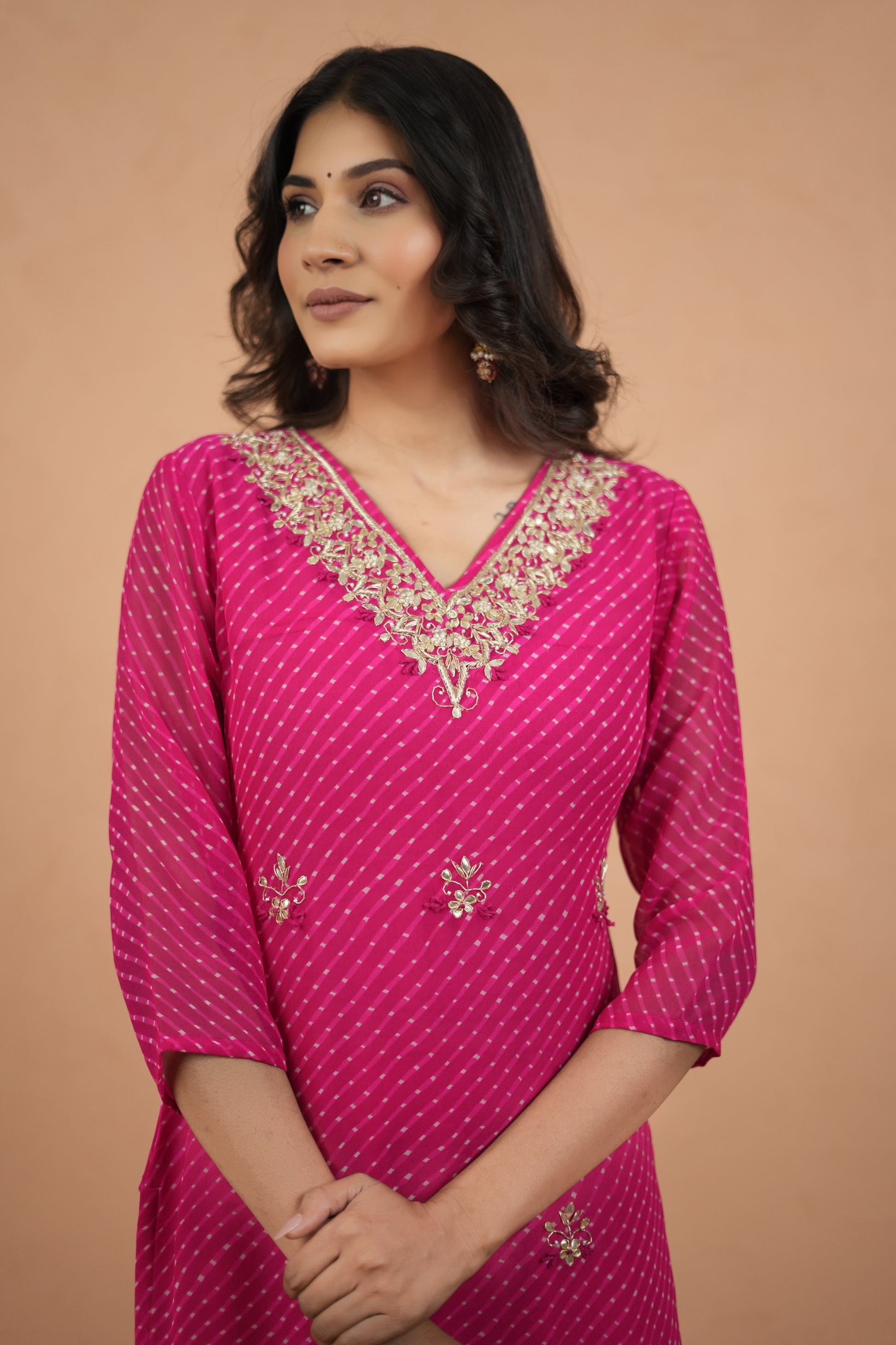 V Neck Pink Mothra Muse Handcrafted Suit Set