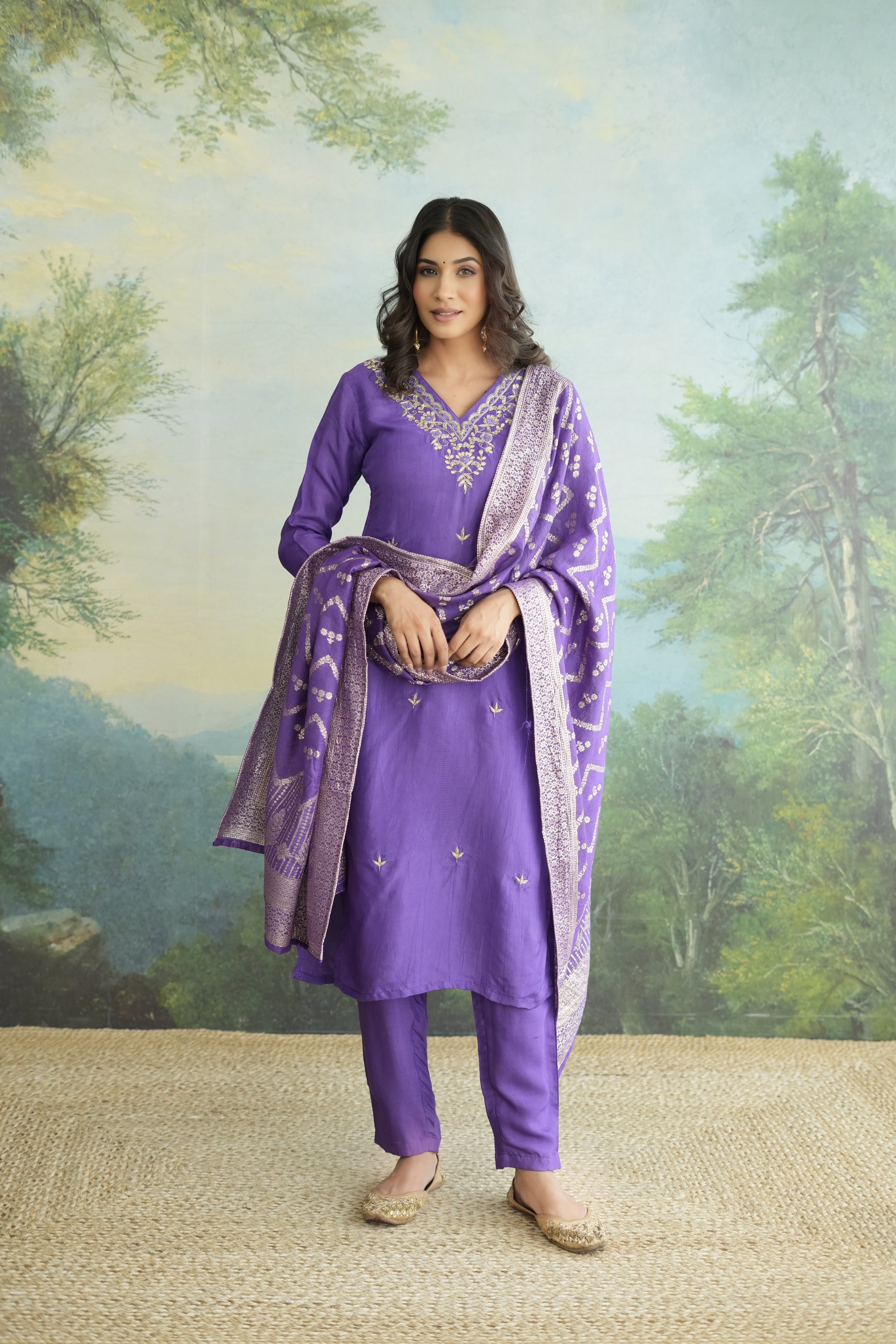 Purple Zari Silk Royale Suit Set