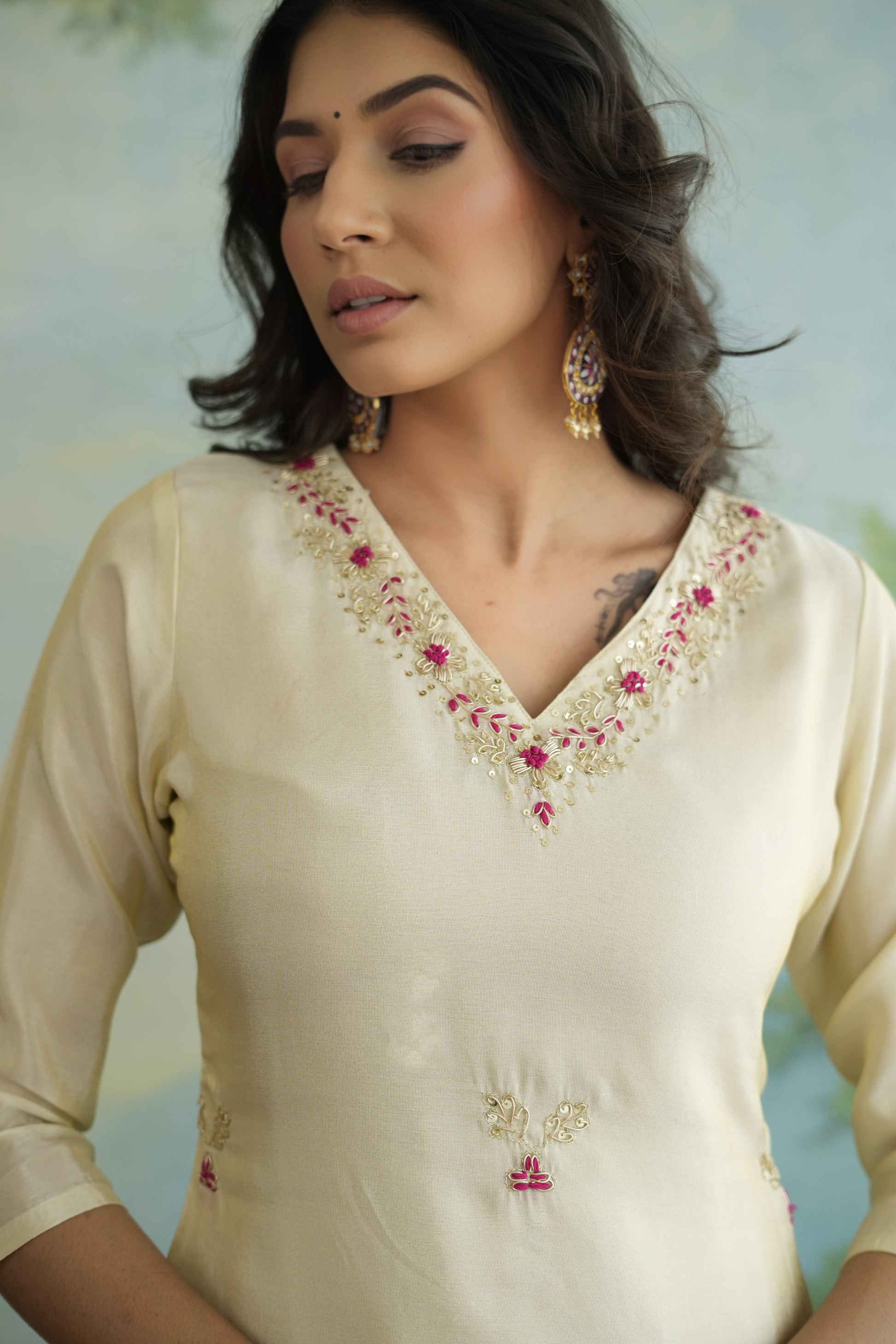 Step into royal elegance with the ZariBandh Tissue Silk Ensemble—a celebration of tradition wrapped in contemporary charm. The Kurta and divider are crafted from luxurious Tissue Silk, offering a soft shimmer and fluid silhouette that's both lightweight and regal.